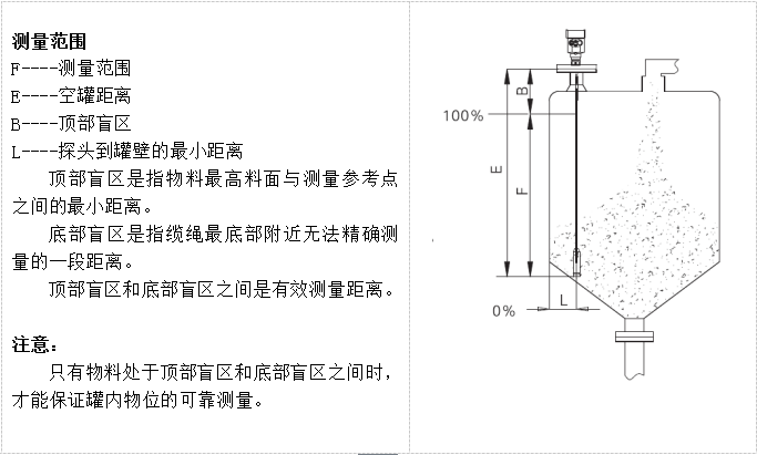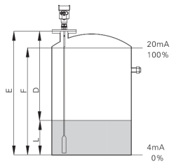 通過輸入空罐高度E(=零點(diǎn)),滿罐高度F(=滿量程)及一些應(yīng)用參數(shù)來設(shè)定,應(yīng)用參數(shù)將自動(dòng)使儀表適應(yīng)測(cè)量環(huán)境。對(duì)應(yīng)于4-20mA輸出。