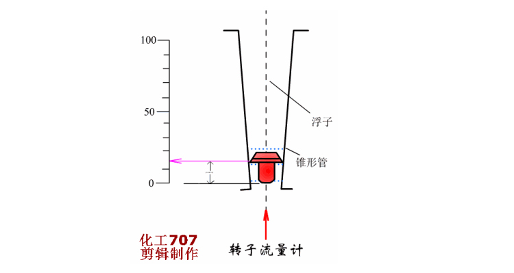 儀表測(cè)量部分為一根垂直安裝的玻璃錐管和管內(nèi)的浮子所組成。錐管的大端向上,浮子隨流量大小沿錐管軸線(xiàn)方向上下移動(dòng)。當(dāng)流體自下而上通過(guò)錐管時(shí),由于流體的作用,浮子上下端面產(chǎn)生一差壓,浮子在此差壓作用下上升。當(dāng)作用在浮子上的上升力與浮子所受的重力、浮力及粘性力三者的合力相等時(shí),浮子便穩(wěn)定在某一高度上。這時(shí)浮子在錐管中的高度與所通過(guò)的流量有對(duì)應(yīng)關(guān)系。該高度就是流量大小的量度。
