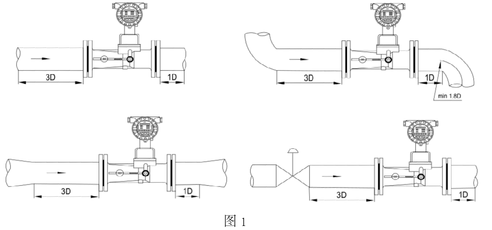 2)流量計(jì)可水平、垂直或任意角度傾斜安裝。
