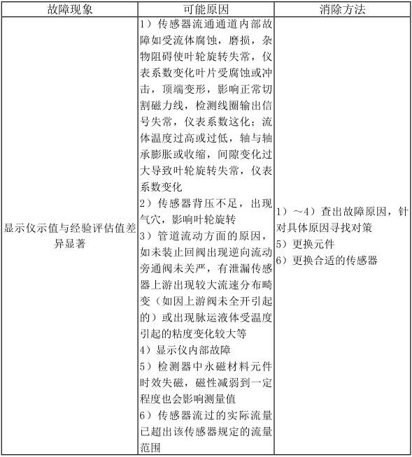 傳感器長期使用因軸承磨損等原因,儀表系數(shù)會發(fā)生變化,應(yīng)定期進行離線或在 線校驗。若流量超出允許范圍,應(yīng)更換傳感器。
