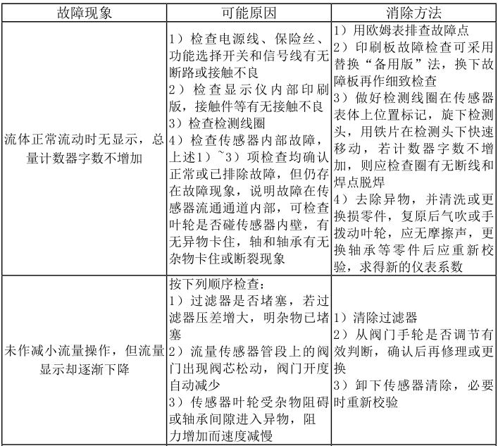 14.為保證流量計長期正常工作,要加強儀表的運行檢查,一旦發(fā)現(xiàn)異常及 時采取措施排除。監(jiān)測葉輪旋轉(zhuǎn)情況,如聽到異常聲音,用示波器監(jiān)測檢測線圈 輸出波形,如有異常波形,應(yīng)及時卸下檢查傳感器內(nèi)部零件。如懷疑有不正?,F(xiàn) 象應(yīng)及時檢查。保持過濾器暢通,過濾器可從出入口壓力計的壓差來判斷是否堵 塞。要定期排放消氣器中從液體逸出的氣體等等。