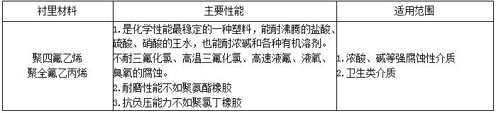 襯里材料表: