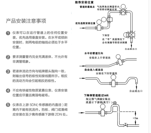1.系統(tǒng)正常運(yùn)行時(shí)測(cè)量管必須保證滿管,如出現(xiàn)非滿管,流量計(jì)就不能正常工作,讀數(shù)可能是忽大忽小的隨機(jī)數(shù)。